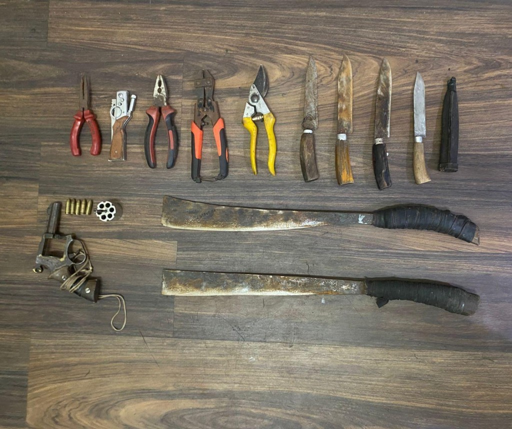 Adapun empat tersangka yang berhasil ditangkap yakni RJ (34) dan SD (30) asal Ogan Ilir, AN alias Mawi (42) dari Banyuasin, serta RS (25) warga Musi Banyuasin. Polisi menyita berbagai barang bukti mulai dari mobil operasional Sigra hitam, senjata rakitan, amunisi, pisau, parang, tali, topeng, hingga plat nomor palsu.