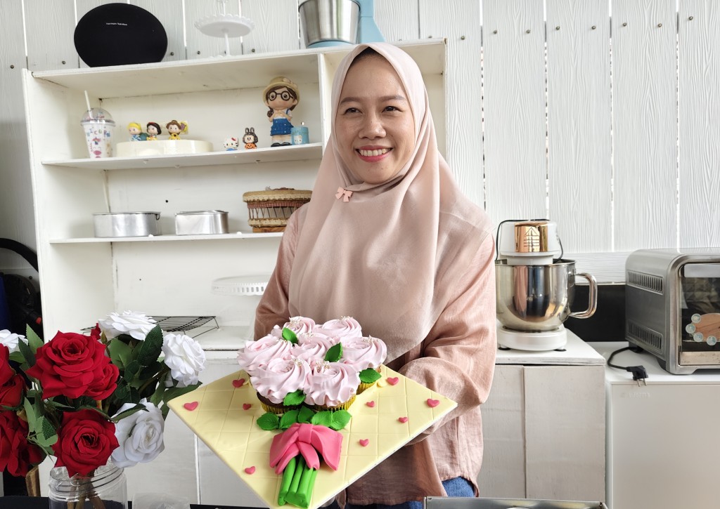 "Ada yang bisa sampai 300 ribuan untuk kue ulang tahun karakter, tapi kalau yang bentuk ini (bunga merah muda) untuk Valentine 175 ribuan," tambah Ria.