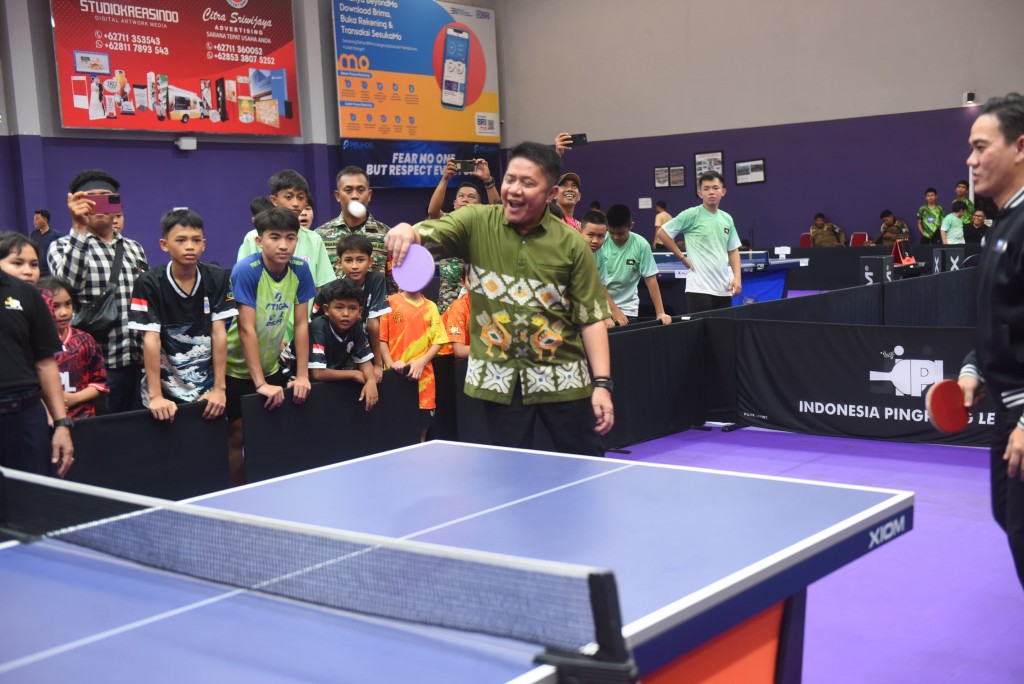 Kaganga.com Palembang. Gubernur Sumatera Selatan (Sumsel) H Herman Deru membuka Kejuaraan Tenis Meja “Indonesia Pingpong League Youth Zona 1 Sumatera 2025”, kejuaraan ini diselenggarakan di Pitstop XIOM Table Tennis Center Palembang, Sabtu (26/4/2025).
