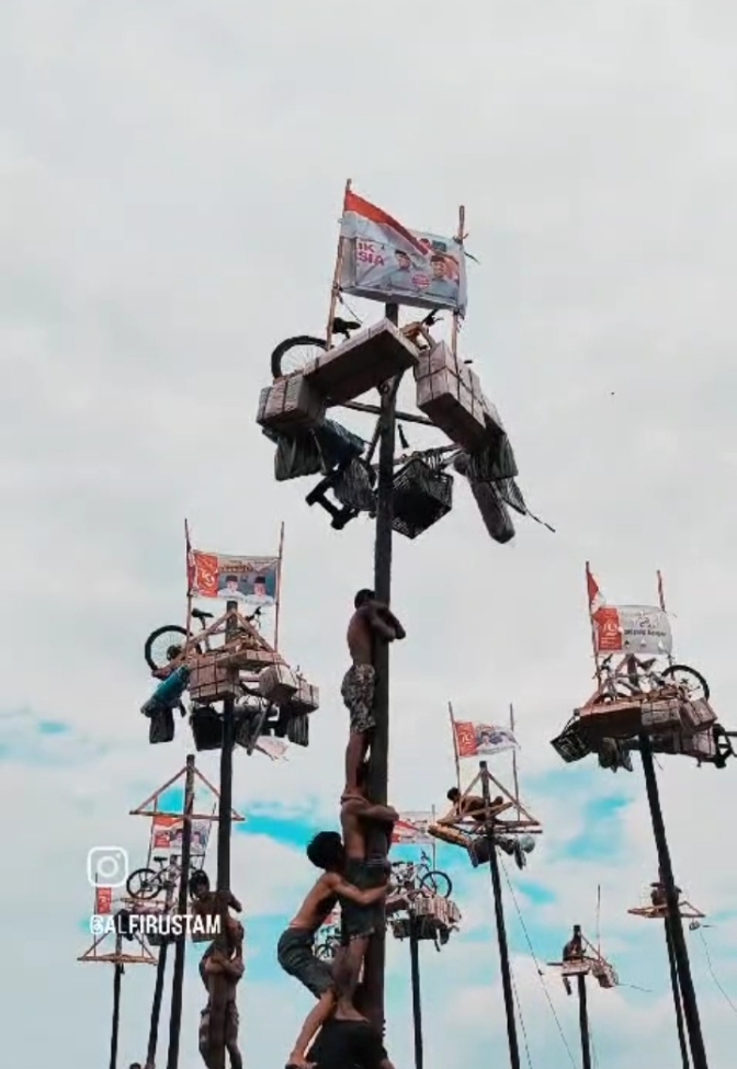 Terlihat dari 79 Pohon Pinang, ada salah satu diantaranya berkibar Bendera bergambar pasangan Slamet - Alfi. Ia mengapresiasi panitia acara bisa memeriahkan acara tersebut apalagi dengan lomba tradisional seperti panjat pinang.