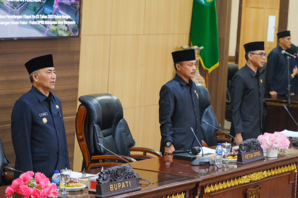 Rapat Paripurna ini dipimpin oleh Ketua DPRD Muba Sugondo dan dihadiri langsung Pj Bupati Muba Drs H Apriyadi MSi, Pj Sekda Muba Musni Wijaya SSos MSi, para Wakil dan Anggota DPRD Muba, serta Kepala Perangkat Daerah Muba.