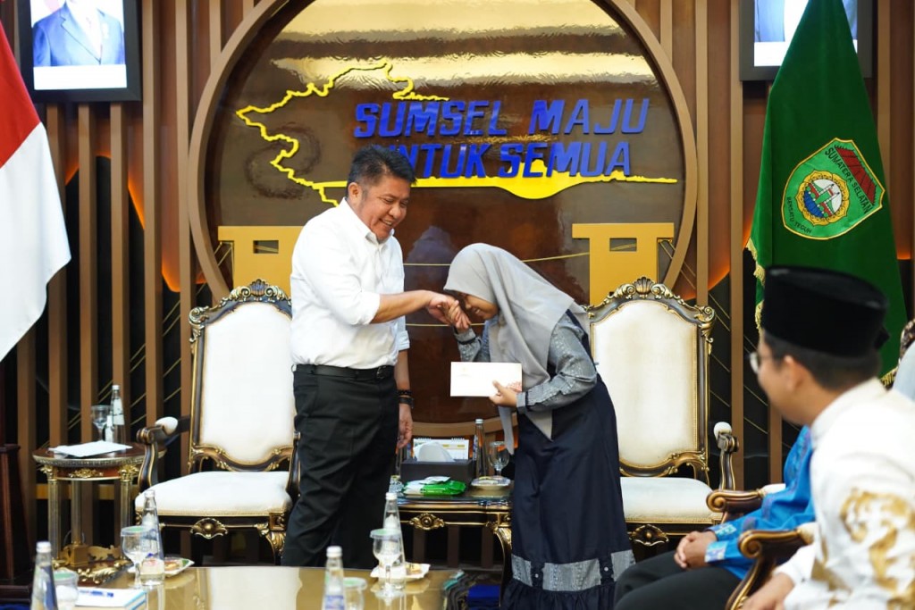 Kaganga.com Palembang – Gubernur Sumatera Selatan (Sumsel) Dr. H. Herman Deru memberikan dukungan penuh kepada Sabilah Raudhatul Jannah, peserta asal Sumsel yang akan mewakili Indonesia pada Musabaqah Tilawatil Qur’an (MTQ) Internasional Tijan an-Nur di Qatar, 15–28 Desember 2025. Dukungan tersebut disampaikan langsung saat menerima audiensi Sabilah bersama orang tuanya, Azmi, dan guru pendamping Abu Hanifah, di Ruang Tamu Gubernur, Kamis (11/12/2025).