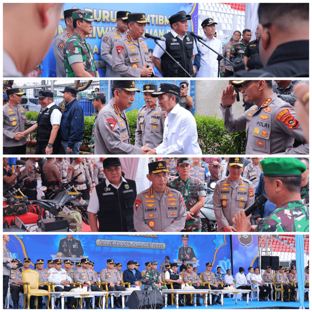 Hadir mendampingi Kapolri, Gubernur Sumsel Herman Deru, Kapolda Sumsel Irjen Pol Dr Sandi Nugroho serta Wali Kota Palembang Ratu Dewa.