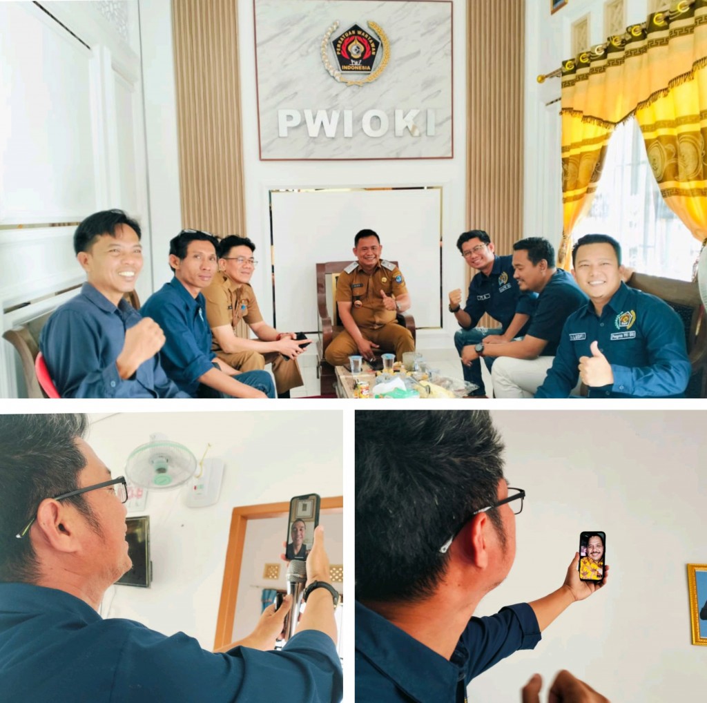 Keduanya memberikan ucapan melalui video call WhatsApp saat Persatuan Wartawan Indonesia (PWI) OKI mengadakan potong tumpeng di sekretariat PWI OKI.