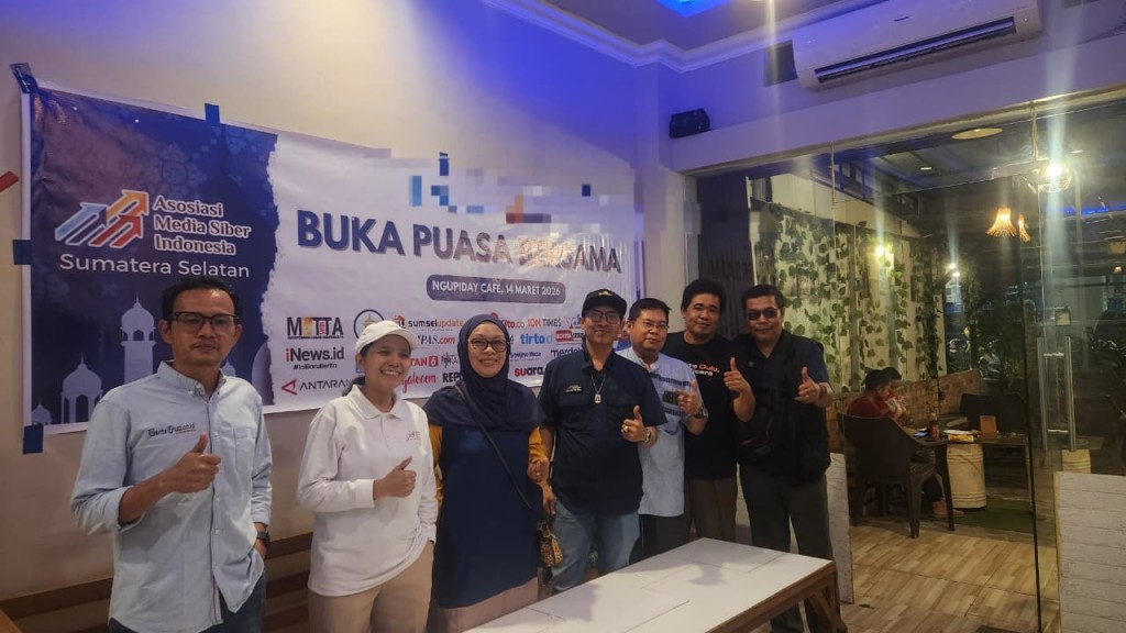 Kaganga.com Palembang, – Pengurus Asosiasi Media Siber Indonesia (AMSI) Sumatera Selatan (Sumsel) periode 2024–2028 menggelar kegiatan buka bersama di Ngupiday Café yang berlokasi di Jalan Angkatan 45 No.80, Lorok Pakjo, Kecamatan Ilir Barat I, Kota Palembang, Sabtu (14/3/2026).