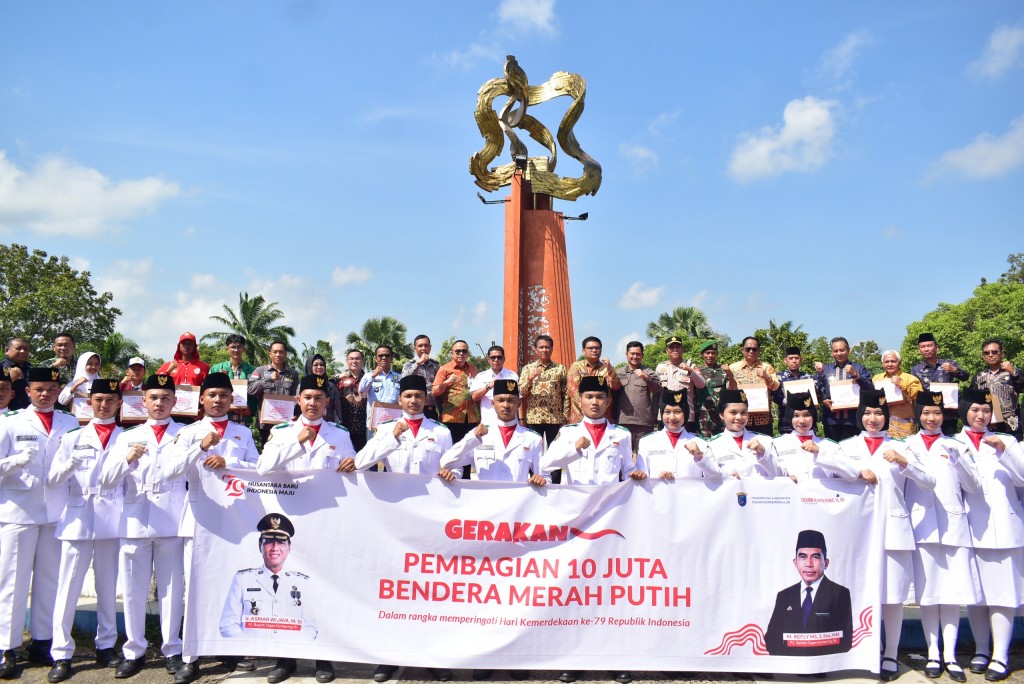 Terakhir Asmar mengucapkan terimakasih kepada seluruh pihak terkait yang telah memberikan sumbangsihnya, sehingga kegiatan pembagian bendera merah putih secara serentak ini dapat terselenggara dengan baik.
