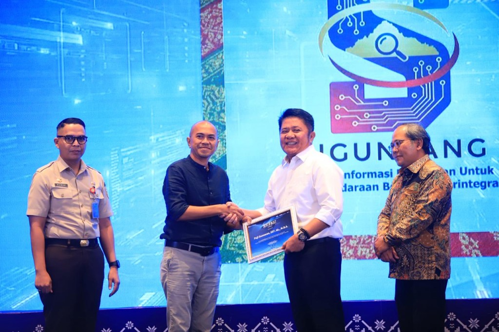 Peluncuran aplikasi SIGUNTANG dilakukan langsung oleh Gubernur Sumatera Selatan Herman Deru dalam kegiatan Capacity Building dan Coaching Clinic Pengisian Evaluasi Kinerja TP2DD se-Sumatera Selatan Tahun 2026 di Hotel Excelton, Selasa (7/4/2026).