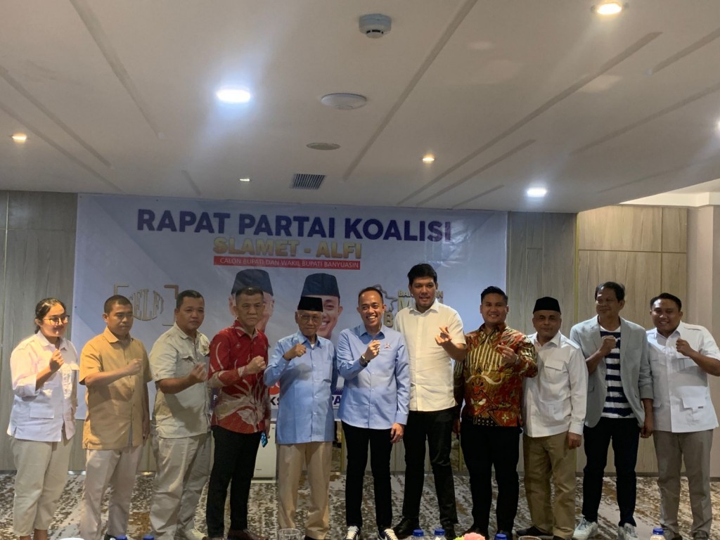 Ketua Tim Pemenangan Slamet-Alfi, Herman Ong di Palembang, Sabtu, mengatakan enam partai itu Partai Gerindra, Partai NasDem, Partai Keadilan Sejahtera (PKS), Partai Kebangkitan Bangsa (PKB), Partai Amanat Nasional (PAN), dan Partai Rakyat Adil Makmur (Prima) menyatakan dukungannya untuk mengusung pasangan bakal calon Bupati dan Wakil Bupati Banyuasin, Slamet-Alfi di Pilkada 2024.