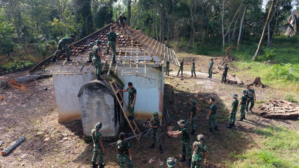 Kaganga.com OKI — Wujud nyata kepedulian terhadap sarana ibadah masyarakat, Satuan Tugas (Satgas) TMMD Kodim 0402/OKI melaksanakan kegiatan pembongkaran bangunan mushola yang akan direnovasi agar menjadi lebih layak dan nyaman digunakan oleh warga.