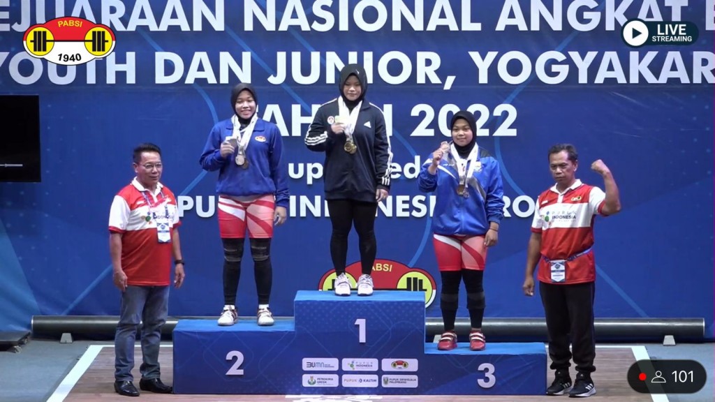 Tiga medali emas Sumsel dipersembahkan oleh Indah Apriza dari kelas 64 kg junior putri. Sementara tiga medali perak didapat Martalena dari kelas 55 kg remaja putri. “Alhamdulillah perjuangan tidak sia-sia. Jadi tiga emas dan tiga perak ini didapat di satu kelas, namun angkatan snatch, clear dan jerk serta total angkatan poinya paling tinggi,” kata pelatih PABSI Sumsel Sutrisno ketika dikomfirmasi awak media dari Palembang, Kamis (29/9/2022) sore.