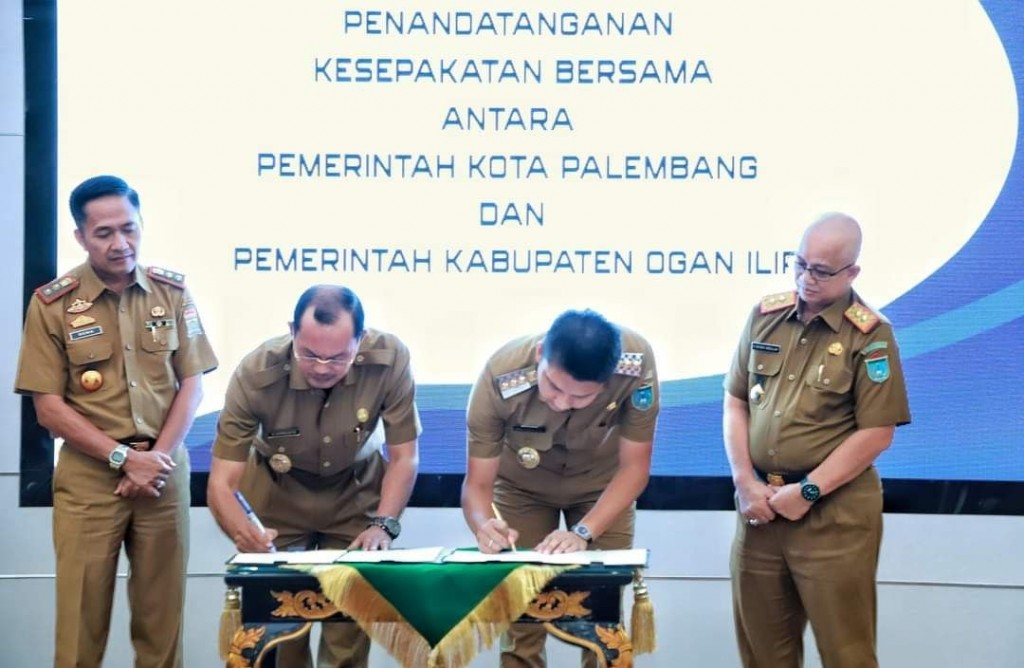Penandatanganan MOU langsung dilakukan oleh Bupati OI Panca Wijaya Akbar dan Walikota Palembang Harnojoyo.
