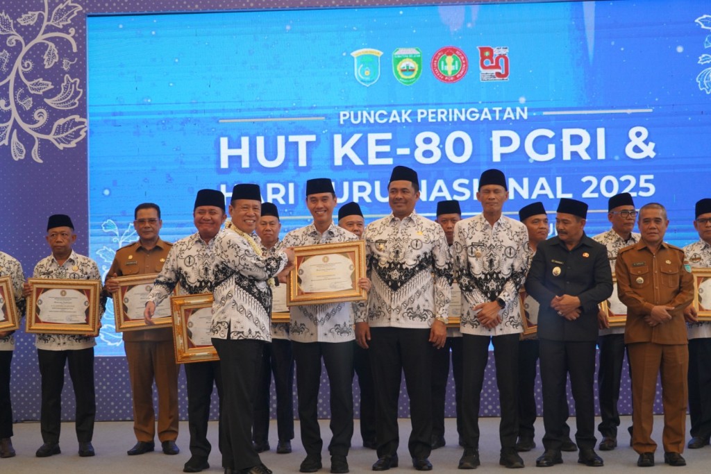 ?Ketua PGRI Sumsel, Prof. Dr. H. Bukman Lian, MM., M.Si, menyampaikan apresiasi atas komitmen pemerintah dan menegaskan peran PGRI sebagai rumah besar perjuangan guru.