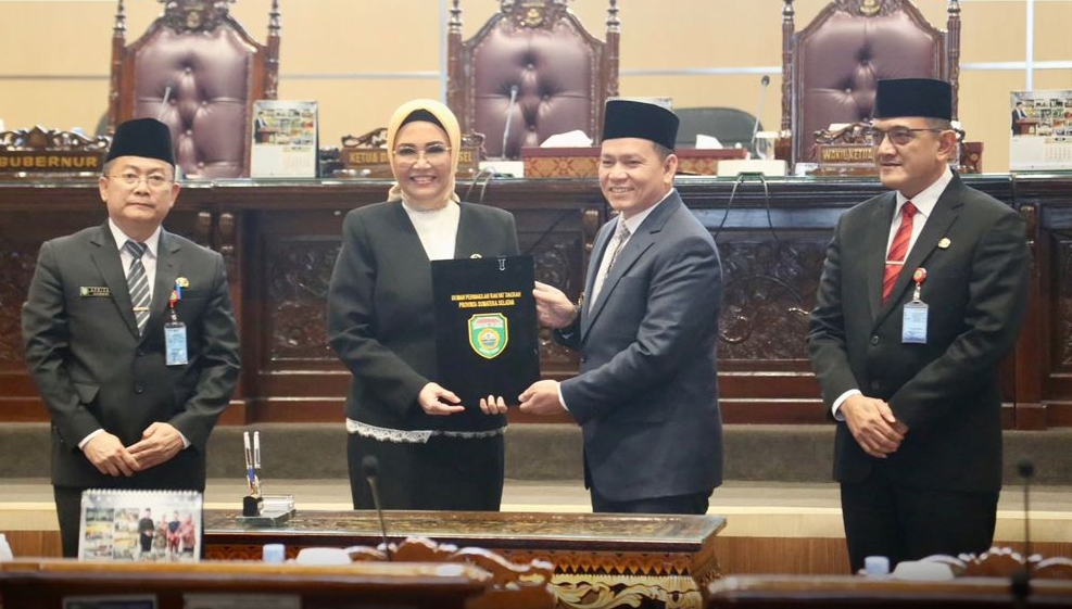 Persetujuan tersebut ditandai dengan ketuk palu oleh Ketua DPRD Sumsel Hj R A Anita Noeringhati S.H,M.H usai mendengarkan